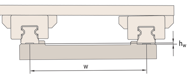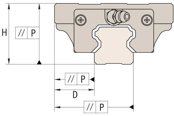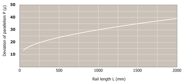 Please note the parallelism required in the structure for correct installation. Parallelism of the installed rails is measured at the guide rails and the carriages. Any parallelism off set causes a slight increase in preload on one side of the assembly. As long as values specified in the table are met, the effect of parallelism off sets on the service life can generally be neglected.