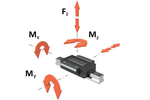 ML = dynamic longitudinal moment load capacity (Nm) - For values, see carriage data tables