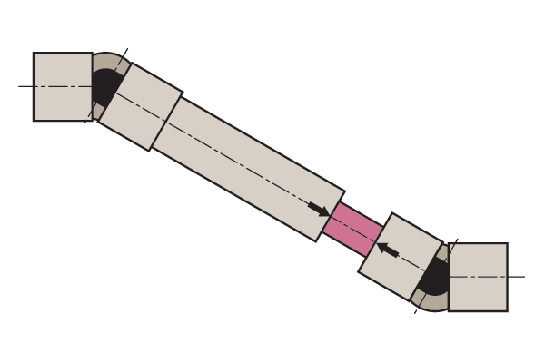 When using two opposite single joints ensure the alignment of the inside yokes.