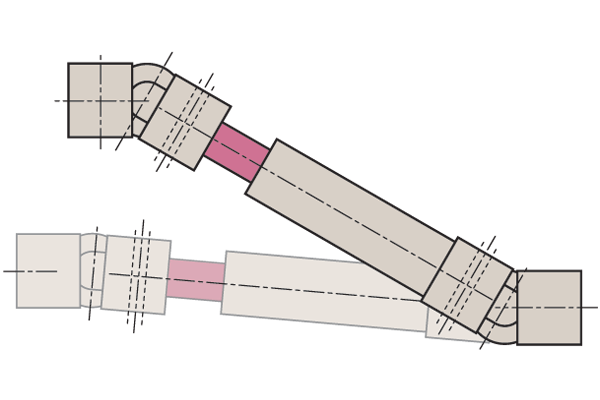 Free cutting steel universal joints, plain bearing (DIN 808 standard). Maximum bending angle of 45° per joint. Used where large bending angles are required.