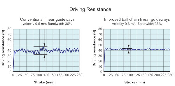 Our new and improved linear guideway systems include the latest “ball chain” technology with the following benefits:
