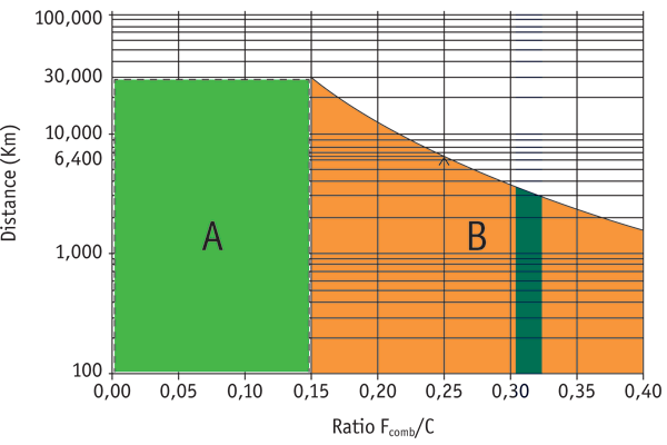 With 0,15 < Fcomb/C ≤ 0,4 it lies in the zone B of the diagram below.