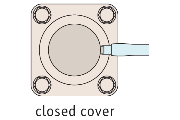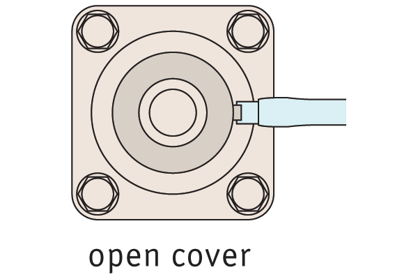 The covers (if required) are installed by snap-fitting, which can be done with a light blow of a mallet. They are removed by inserting the tip of a screwdriver into the cavity and applying light pressure to release them.