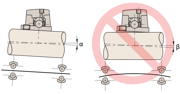 Install the shaft by mounting the bearing unit housings on the supporting frame. Tighten the inner ring retaining screw to the required torque indicated in the torque value table.