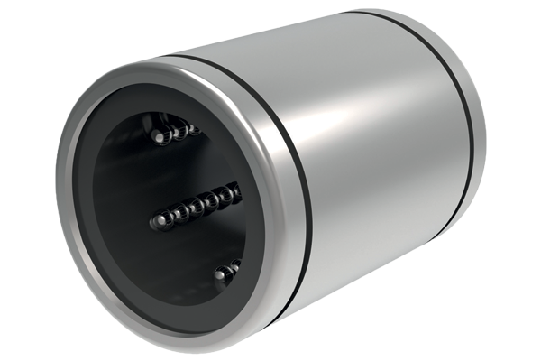 The uniquely designed ball plate (in the outside diameter of the bushing), is made of hardened steel. The precision ground groove is slightly larger than the ball size, which provides greater contact area between the balls and the ball plate, and as a result, provides 3 x higher load ratings of conventional linear bushings.