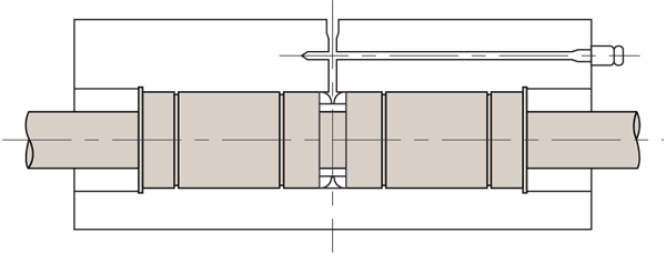 Adjustment of clearance (for adjustable type bearings and shafts), is achieved with an adjustable housing assembly (as shown below). In this case, the slotted side of linear bushing should be located at 90° to the open side of housing for equal radial deformation.