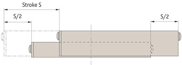 The stroke is centred on the mid point of the slides (i.e. 50% of the stroke each way).