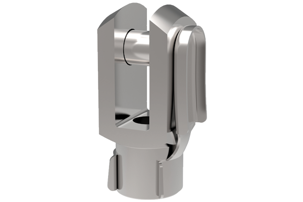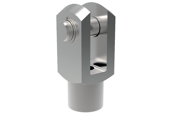 A clevis joint is a type of coupling where the mating component fits between the forks and is held in place via a clevis pin. Made to DIN 71752 and also known as a fork end or yoke, they are commonly used as a coupling on the end of air cylinders or at the either end of a turnbuckle or wire rope for tensioning.