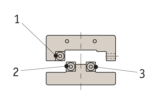 1. Apply a low viscosity oil on contact surface, fix rail (1,2 & 3) lightly.